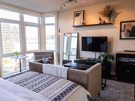 Furnished spaceHardwood floorsFloor-to-ceiling windowsSmart dishwasherBlackout roller shadesAc unitHigh-end murphy bed