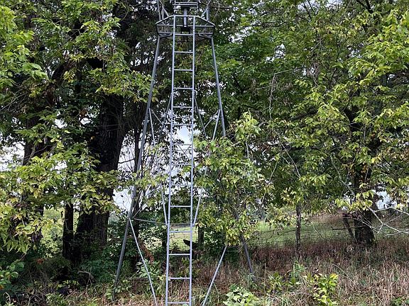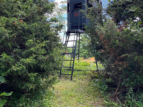 A hunters paradise and all set up with two tower stands, four box blinds, two ladder stands and one lock-on stand.Five food plots with a variety of grasses including clover and buck forage oats. one pond and a small creek to provide water for the game. Apple trees are planted in at least three locations as well. There is city water and electric to a 27 ft Sonic camper that will also convey with the property.