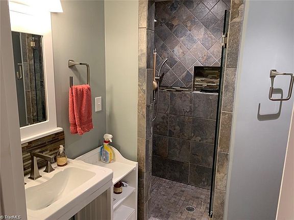 Remodeled home on 20+ mostly wooded acres with pond. Beautiful peaceful setting yet minutes from in-town conveniences. House features large, eat-in island kitchen. Deck overlooking the serene back yard and pond. Walk-out basement for recreation, workshop or den/living space. Additional 22 acres with stream, lake and pond is also available for separate purchase. Gated driveway, Outbuildings for tractor and equipment storage. Private easement road off of Joyce Circle. Convenient to N. High Point and easy access to I-74 to WS in minutes. Forsyth County taxes.