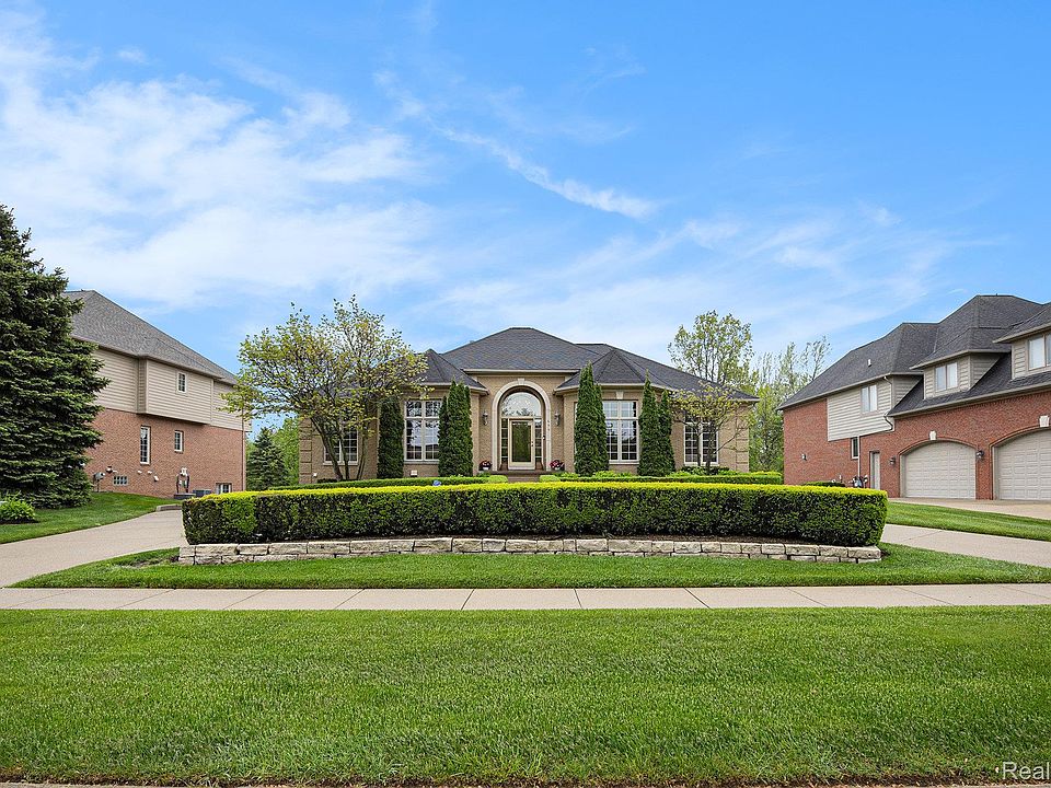 Welcome home to this one of kind luxury estate meets timeless architecture and modern function on a oversized, private meticulously landscaped European inspired lot and backs directly to the Stony Creek River. Soaring cathedral ceilings, rich hardwood floors, and a grand spiral staircase that is a true architectural centerpiece. The entry level kitchen features, light-filled breakfast nook with panoramic windows and heated tile floors, high end commercial stainless appliances, this space is perfect to enjoy morning coffee while overlooking the private backyard and newer raised deck. Formal oversize dining room with butlers pantry. The primary suite is a private retreat with an opulent en suite boasting European glass and stone. Oversize custom closets and large personal gym.