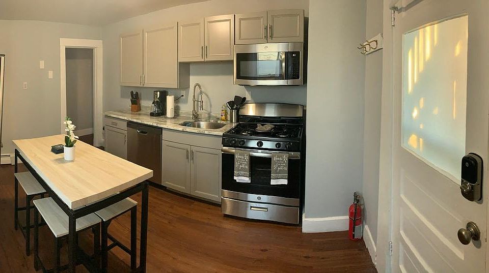 Newly renovated apartment walking distance from the beach. Stainless steel appliances and a very nice large bathroom. Access to a beautiful shared backyard with an area to grill. The apartment has one small sun room in the back that can be used year round as a work from home office or extra storage room. The rental also includes 2 off street parking spots. Owner pays for water and electricity. Tenant is responsible for paying gas. There are two available off-street parking spots. Pets are not allowed. Smoking is allowed in the backyard but not in the apartment.