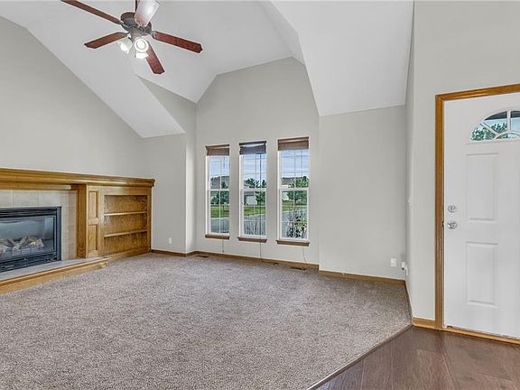 Check out your new home, situated on a desirable corner lot in the charming Willow Springs subdivision of Gardner, KS, this side-to-side split is anything but ordinary. Step into the living room, where vaulted ceilings and a stunning fireplace flanked by built-in bookshelves create the perfect backdrop for your literary adventures or Netflix marathons.