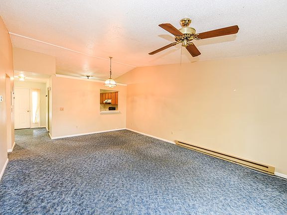 FIRST FLOOR!! One level living with ATTACHED GARAGE! No need to rent when you can own, build equity and get an income tax break. Cathedral ceiling in Living room/Dining Room combo area with ceiling fan, wall air conditioning unit and sliders to small patio. Cathedral ceiling in kitchen with appliances and 2 Bedrooms plus 1 1/2 Baths as well as laundry room area complete with stackable washer & dryer. Easy access to Rt.8 or downtown shopping.