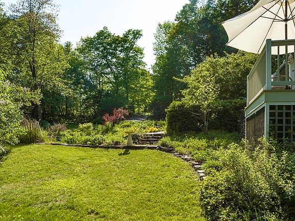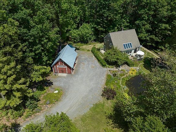 Home, Sweet Home! Enjoy Beautiful Outdoor Space + Contemporary Features - Single-owner home changing hands for the first time! South-facing Saltbox set on 2 lush acres with lovely brook running through property, small pond w/waterfall garden feature, fruit trees, perennials, Goshen Stone patio & walls, lighted stair rail, large deck. 18X24 workshop/barn (built 1998) is fully finished w/metal roof, propane heat, new flooring, recessed lighting, stand-up headroom on 2nd flr, 220 outlets in place for machinery + attached garden shed in back. Brand NEW septic system 2023, replacement windows (2018-2020). Fantastic sunroom w/Vermont slate floor has passive-solar features + 4 sliders entering into living space. Attractive & spacious kitchen with BOSCH stainless appliances, dining area, living room w/wood floors. 3 bedrooms, 2 full baths, basement has walk-out w/high ceilings & is partially finished, wood stove (2018) to remain. Sweet GEM of a property awaits its new owner!