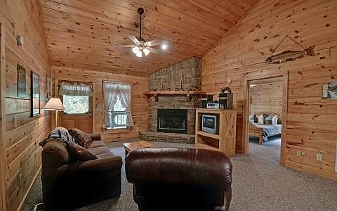 CLOSE TO TOWN and already in a successful rental program. Enjoy rocking on the front porch taking in the year round mountain view. This cabin truly offers serenity now with a peaceful setting in the woods. The interior is spacious with an open floor concept. There are two bedroom and two baths. Enjoy soaking in the hot tub on cool nights. You are minutes from downtown Blue Ridge and not far from the Cohutta Wilderness area. There are tons of outdoor activities nearby. This cabin comes mostly furnished. Will not last long. These photos are older and many updates have been made. since they were taken. New pics to come soon.Click on the link to the rental sight to see updated pics.