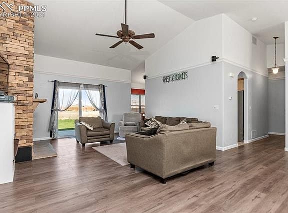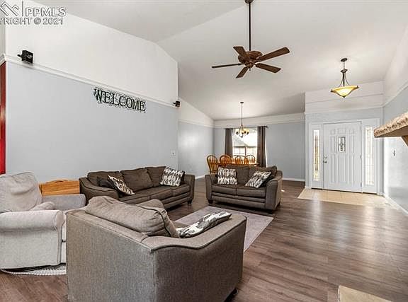 Fantastic 6 Bedroom, 4 Bath home located on 1.36 acres with finished oversized 2 car garage near Pueblo West High School. Main level Living Room features vaulted ceilings, gas fireplace, new Premium Laminate Flooring and walk-out to the back patio. Formal Dining Room. Gourmet Kitchen features Hickory Cabinets, Granite Countertops, Tile Flooring, Breakfast Bar, Pantry and Breakfast Nook. The Master Suite includes large walk-in closet, sitting area, and walk out. Master Bath includes double vanity, walk-in shower and jetted tub. Additionally on the main level are two Jack and Jill bedrooms with adjoining full bath. There is a half bath off the Living Room area and a Laundry/Mud room off the garage. Enjoy the fantastic newly finished basement that features a second Master Bedroom with adjoining 5 piece bath, a huge family room pre-wired for entertainment, two additional generous sized bedrooms, a separate office/study area, and a Wet Bar with a Refrigerator and Microwave included. All rooms on this level are wired with CAT 5 and Coaxial. There are also laundry hookups on this level. Check out the outside back area that includes a 6' Privacy Fence, a fenced dog area, a huge Storage Shed that could provide an additional garage space, an in-ground trampoline, children's playground set. volleyball area, and fire pit. Lots of RV parking and zoned for horses. Don't miss the beautiful landscaping, the basketball hoop, and the 30' flag pole in the front of this Wonderful Home!