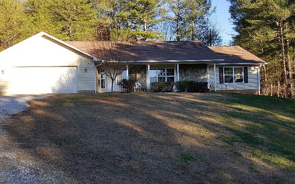 Cheerful One level Ranch Family home...Lovely 3/2 open and generous living space that your entire family will love. Easy five miles to downtown Franklin and just 2 miles to highly requested Cartoogechaye School. Gentle yard requires minimal maintenance. Awesome year-round view directly toward Wayah Bald, Macon County's highest peak. Two wonderful covered Porches. Large, conveniently designed Kitchen. Huge and Elegant Master Suite with walk-in closet and lots of room for your California King; onsuite bath has jetted tub and separate shower. Split bedroom plan plus lots of storage space throughout. Vaulted Ceilings, fans in every room, and beautiful efficient gas log stone fireplace. Large laundry room and mud room between garage and kitchen for convenient entry. Home has plenty of room for the kids to play, both inside and outside. Private patio in the back for outside bar-be-ques, relaxing and entertaining. Huge Double garage includes workshop space for Dad. In excellent and well-maintained condition, this home has hardly been lived in and is nearly new with that welcome home feel. Easy drive to Nantahala and Wayah Bald for hiking, boating, white water rafting and much more.