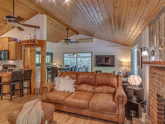 Tucked in a small subdivision, this ranch style home is the perfect place for you or your tenants to call home. Located in a great area, close to town. Step inside and feel the character; it's open with a spacious living area and sliding glass doors that allow a lot of natural light. Vaulted tongue & groove ceilings add to the character and open feel. Entertainers, invite your friends over to relax by the fire place or out on the large covered deck with ceiling fans. The deck wraps around to an outdoor seating area and fire pit. Kitchen is centrally located and open to the living room. Cook while being a part of the conversation. Nice breakfast bar for serving snacks or enjoying your morning coffee! Both bedrooms are located off the living room, master has an en-suite bath and reading nook. Laundry room is in the basement and brings alot of additional storage. Nicely landscaped and easy to maintain.