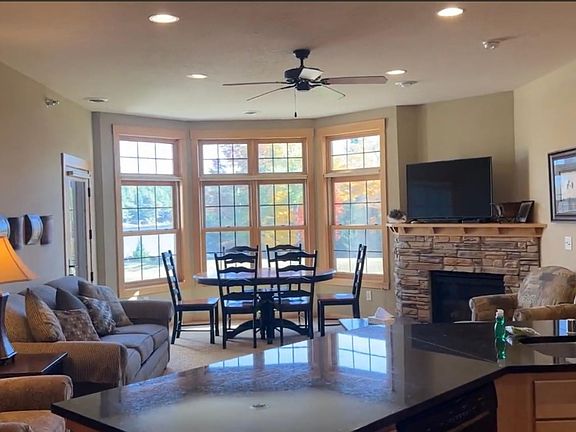 Maintenance FREE Three Lakes Chain Living with Luxury Amenities! This stunning 2 bedroom, 2 bath has it all; gorgeous Southern views of Deer Lake from 2 balconies, 1 level living, garage unit directly across the hall, indoor pool and hot tub, fitness area, outdoor gigantic spa, basketball and tennis courts, on snowmobile and UTV trails, need I say more?