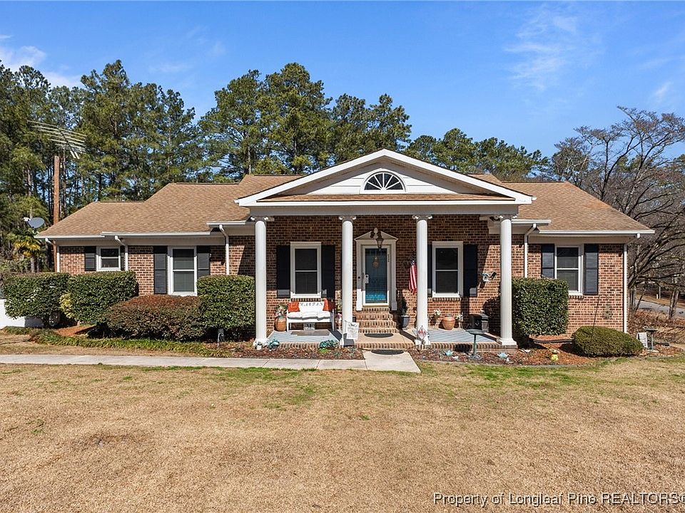 Are you ready to never want to leave your home? This Ranch home sits on 2.5 acres (NO HOA) featuring leaf gutter protection & a saltwater water softener system throughout, full basement & 2 driveways to easily access whichever level you prefer. Boasting 3 bedrooms, 3 bathrooms, office, sunroom w/an additional bonus rm in basement & an outdoor oasis! Separate fenced in yard, beautiful inground pool w/pergola, sauna, storage shed & oversized 2 car garage w/2 additional rms that extend beyond for storage. The updated kitchen includes plenty of cabinet/counter space & large farmhouse sink. The living room opens to the dining & office area so you're always in the mix. Primary bedroom has dual closets & an updated ensuite w/2 vanities. 2 additional bedrms & full bath are great in size. The basement has endless possibilities w/a bonus rm, full bathrm & wet bar, can be turned into a MIL suite, or stay as an entertainment hub! Located 20 min from downtown Fayetteville & 25-30 min to Fort Bragg.