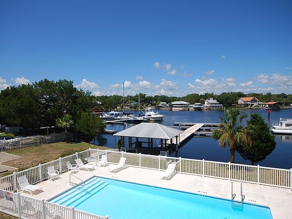 This beautiful condo is a must-see! The fully furnished top floor, corner unit boasts magnificent views of the Steinhatchee River. Enjoy the tranquil setting from the balcony of this beautiful condo. This condo does include covered parking. The Rivers Edge Condominiums are great rental units as well! The community includes a riverfront pool, floating aluminum dock with a slip for each unit, and a private ground floor tackle storage closet. The condominium is conveniently located just one mile from the Gulf of Mexico (five minutes by boat) on the South side of the river. Good Times Marina and Who Dat Bar and Grille is right next door so you can walk over and enjoy a cold beverage or a hot meal. They will even cook your catch of the day for you! If you love scalloping, fishing, or just relaxing on the water, then this is the place for you.
