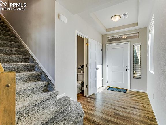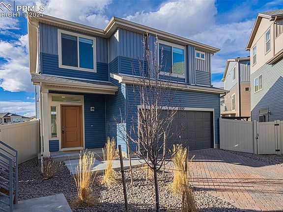 Located in the sought-after Banning Lewis Ranch, this stunning home blends modern style with everyday comfort. Nearly new and ready for move-in, it features three bedrooms and two and a half bathrooms, offering a stylish and efficient layout. The front yard is beautifully designed for minimal upkeep, so you can enjoy your surroundings without the hassle of constant maintenance. Step through the front door and into a well-designed space that makes the most of every square foot. The main level features durable vinyl plank flooring throughout giving the home a clean and inviting feel. The open-concept living area seamlessly combines the kitchen, dining, and living spaces, making it ideal for both relaxation and entertaining. The kitchen is a showstopper with sleek, modern appliances, including a high-end refrigerator that even makes craft ice. The granite countertops and spacious island provide plenty of room for meal prep, dining, or gathering with friends. Upstairs, you’ll find two cozy secondary bedrooms along with the tranquil primary suite, which boasts its own private bath and a large walk-in closet. An additional full bathroom on this level ensures comfort and convenience for family members or guests. The laundry room is also conveniently located upstairs, and both the washer and dryer are included with the home. One of the standout features of this property is the breathtaking mountain views. The backyard offers endless possibilities for personalization, whether you envision a relaxing outdoor lounge area, a thriving garden, or both. Living in Banning Lewis Ranch means enjoying an abundance of community amenities, from a state-of-the-art recreation center and swimming pools to fitness centers, parks, and trails. The neighborhood is known for its top-rated schools, frequent community events, and close proximity to shopping, dining, and essential services, making it the perfect place to call home.