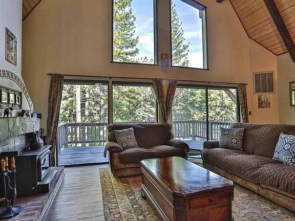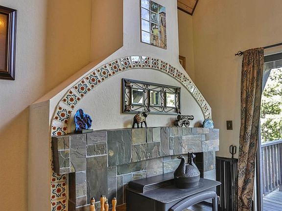 Fabulous Chalet Style Dutch Barn home located on a beautiful 9.44 ac parcel surrounded by nature and lots of trees. Breathtaking sunrises and sunsets from this hilltop location. Beautiful two story living room windows to enjoy the serene beauty around you. 2 Bedrooms and large loft with private balcony, Impressive fireplace and vaulted wood ceilings, LED lights and ceiling fans throughout. Save money with these amazing energy efficient features including Solar system (Owned), 50 year roof, new appliances, newer central heat/air and hybrid heat pump water heater. Garden area with 7 foot fencing, custom tool shed and enclosed Chicken Coop. This home sits at the end of the long driveway for privacy. Timber Harvest Plan is in place and ready to be executed, money in your pocket!