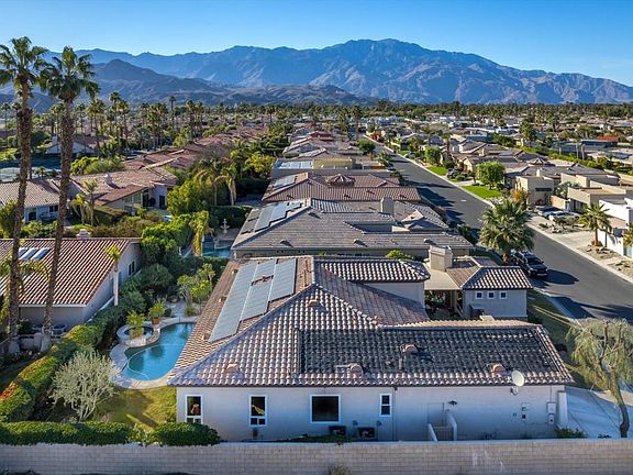 Exceptional opportunity for you to own a beautiful Plan 2 home in Montage at Mission Hills with 4 bedrooms, 3 1/2 bathrooms including a casita, pool and spa. This home is approximately 2,389 sq ft and has a private front courtyard and Southern exposure in the back yard where the pool and spa are. There is only one neighbor to the west of this home and the lot is located on an interior location within the community. Some of the special features of this home are 54 panels of OWNED solar, all new Millguard windows and sliders, new AC in 2021 (there is a separate AC unit for the casita), Fisher and Paykel 2 drawer dishwasher, a chiller for the pool, misting system in the front courtyard and along the back patio, passive pool solar heating, a beautiful back yard with mature tropical landscaping with southern exposure, pebble finish salt water pool and spa, new exterior paint for the home, and new paint in the garage. The residents of Montage enjoy a full membership to Mission Hills Country Club including all amenities except golf. Washer, dryer and refrigerator are included as well as the TV and mini refrigerator in the casita. HOA dues are only $325 per month. This home is located on Fee Land so you own the land. See attached Special Features List. Shown by appointment.