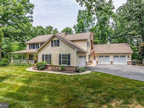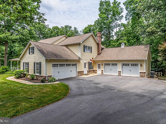 Welcome to 6991 Beachmont Dr, a light filled outdoor living and work from home dream. Great location, minutes to downtown Historic Sykesville, Route 32, Piney Run Lake Park. Lots of privacy on this 1+ acre lot that is nestled on a cul de sac. A wonderful home to entertain in and enjoy the outdoors. Outside the home features a lovely wrap around front porch, large rear deck, custom paver patios with hot tub, very pet & kid friendly fenced rear and side yard, 2 separate garages or workshop for a total of 4 cars with a lofted storage area and high ceilings, and an additional outdoor shed, and plenty of additional parking spaces on the driveway. Trails behind the home lead to Piney Run Lake Park with plenty to do such a boating, fishing, picnics, and events. You can see the lake from your home certain times of year. Inside you will find peaceful spaces to live, work, and entertain. The enormous family room with gas fireplace off the kitchen leads to the screened porch and large deck, makes the main level a wonderful place to spend time with friends, family, and pets. The kitchen has updated appliances, gas stove, stainless steel, granite, hardwood floors, a huge pantry, and a huge island. It's a great place to gather and it's right next to the large separate dining room. Also on the main level is a dream office, full of windows, light, and tranquil nature views. The office also opens up to the wrap around porch. Of course there is a large laundry / mud room and half bath on the main level as well. Upstairs you will find a gigantic primary suite , with beautiful views, tons of windows, a huge walk in closet, and large bathroom with separate shower, tub, and private toilet. There are a total of 5 bedrooms upstairs and 3 full baths. Downstairs in the finished basement there is a possible 6th bedroom with a rough in for a bath or use it as additional playroom, living room, or however you desire.