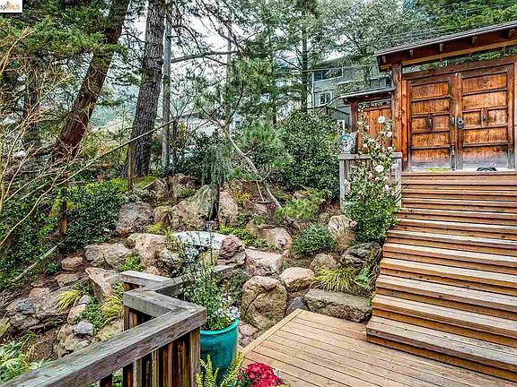 Step through the antique Japanese gates to a private world of grace and tranquility. The Zen influenced front garden with waterfall, stone foot bridge, craggy rocks and lush plants flows to the double door entry into the elegant interior. The open concept living and dining rooms feature vaulted ceilings, soaring fireplace wall and floating display shelves, with passage to the huge outdoor interlocking deck system through newer Marvin doors. The backyard has a fern garden and footbridge over the stone-lined winter creek. The well-appointed kitchen includes a gas range, Bosch dishwasher, LG refrigerator, Brizo faucet at the stainless-steel sink, stone countertop and ample storage. Adjoining is the main floor family room, with maple wood flooring, floating display shelves. Main floor has a bedroom & full bath. Separate studio for art, yoga. Lower level allows flexible uses with 2 bedrooms, 2 baths, second family room, bonus room, storage room.