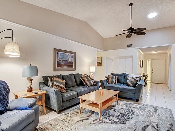 This 3 Bedroom 2 Bath Model Villa With Garage is Sure to Win Your Heart! Paver Driveway & Paver Walkway Greet You As You Walk To The Screened Entry. Matching Tile In The Foyer, Living Areas, Patio & Den. The Vaulted Ceilings In The Living & Dining Areas Add To The Spacious Open Feeling Of This Floorplan. This Villa has updated appliances in the kitchen as well as hurricane proof windows throughout the home, hurricane proof garage door and a brand new a/c and brand new roof, the washer and dryer are inside the unit. Other renovated features include wood laminate flooring in the bedrooms. Lot's of storage space with spacious walk in closets and a staircase leading to the attic in the garage.