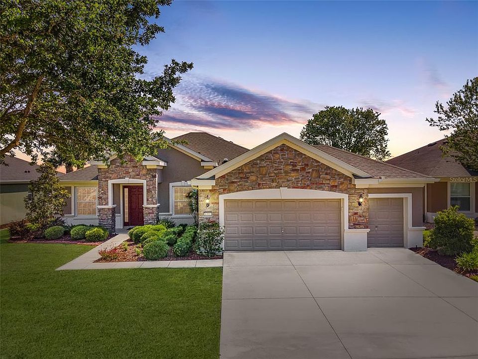 NEW ROOF!! INSTALLATION ASAP (AUG) NEW ROOF!! Stunning Golf Course Views! Resort-style living awaits with elevated fairway views in this beautiful Johnstown model situated on a Premium lot of the 6th Fairway of the community golf course. Located in the gated, 55+ Stone Creek Golf Course Community this home offers some of the best golf course views around. This home features many desirable extras such as high ceilings, luxury vinyl plank flooring in the main living areas, and an eye-pleasing neutral color palette throughout in an open and inviting floor plan. Light and bright living room with expansive sliders that offer direct access to the covered patio and birdcage with evening shade and a chance to relax and enjoy the scenic golf course views. The stylishly appointed kitchen offers granite countertops, recessed lighting, a tiled backsplash, stainless appliance package, a large pantry, and an adjoining nook for casual dining. Spacious Owners suite offers more priceless golf course views, a custom walk-in-in closet, and an en suite bath offering a large double sink vanity and a spacious walk-in shower with seating ledge. Both bathrooms in the home were recently updated in 2022 with new shower tiles and frameless glass shower doors. A bonus office/den area with double French doors, new AC 2017, new lanai screening and irrigation timer 2021, an inside laundry room with almost new washer/dryer, and an expanded garage with epoxy coated flooring and golf cart parking are just a few more things you will love about this fantastic home. Move in immediately and start enjoying fantastic community activities and premium amenities including a golf course, resort-style pools, health spa, trips and entertainment, and more!