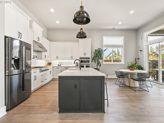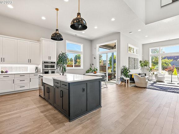 Stunning 2022 build by West Hills Homes NW nestled in the heart of one of the most sought-after neighborhoods in Wilsonville, surrounded by the impressive 2019 Street of Dreams. Breathtaking soaring ceilings, large windows and high end finishes throughout. Luxurious primary suite including heated floors, spa-like bath and large walk-in closet. The additional full suite on the main offers a comfortable space for guests or work from home. Main floor laundry with mudroom. Upstairs find 2 large bedrooms and a fantastic bonus room with wet bar, mini fridge and upgraded shiplap, perfect for a home theatre or kids playroom. Central Vacuum + Epoxy finished garage. Fenced + Landscaped yard with calming water feature, pergola and outdoor lighting. Fantastic lot in Frog Pond at nearly 10,000 sq ft, just one block to the new elementary school set to be complete in the next year. Community features nature trails, neighborhood parks, easy access to I5, shops/restaurants and top rated schools.