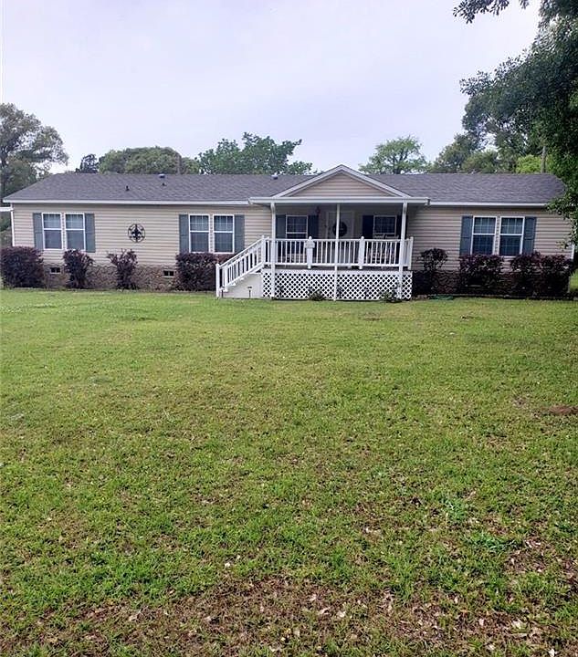 Great home in country setting. 3 bedroom 2 full bath double wide home on one acre of land. Large front and back porch, great for get together with family and friends. Nice size kitchen with spacious cabinets and all appliances, dining room with 2 built in cabinets. A large living room with a beautiful fireplace. The primary bedroom is very spacious and has a large bath with double vanities, a garden tub and a stall shower. A large second bath also has garden tub. There are 2 other spacious bedrooms. The outside features include storage building with electricity, large front and back porches, nice size front and back yards with plenty of shade. Move in ready.