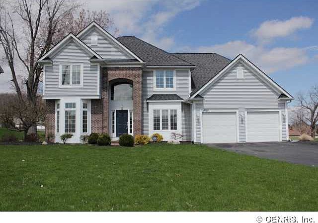 Just Reduced ..2716 SF Transitional with Golf Course views! Stamped concrete walkway, welcoming 2 story foyer, spacious eat in kit/w granite countertops & brkfst bar, appls included. Huge walk in pantry, dinette area w Atrium dr to relaxing rear deck. 2 story vaulted great room, gas fireplace, transom windows. Elegant formal dining rm, formal living rm/sitting rm, 1st fl laundry. French doors to private mstr suite, tray ceiling, full private bath w corner whirlpool tub, WI closet. 3 additional large bedrooms. Victor schools, close to shopping, beautiful view of Cobblestone golf course.