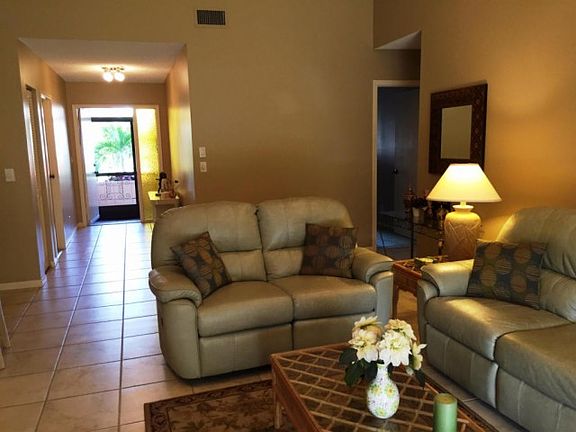 EXCELLENT PRIVATE LOCATION ON A CORNER LOT, WELL MAINTAINED 3/2 VILLA WITH GARAGE. NEW AC IN 2014, FRESHLY PAINTED ON INTERIOR - NEWER WASHER & DRYER. TILE IN KITCHEN, BATHS & LIVING AREAS, CARPET IN BEDROOMS. MASTER BEDROOM HAS A LARGE DOUBLE CLOSET. EXTERIOR SCREENED ENCLOSED PATIO CAN ENTER FROM LIVING ROOM, MASTER BEDROOM OR KITCHEN, VIEW OF SPACIOUS EXTERIOR YARD. A SHORT WALK TO COMMUNITY POOL. POINCIANA OFFERS A CLUBHOUSE WITH GOLF, TENNIS, SOCIAL ACTIVITIES PLUS MORE. NOTE - SPECIAL ASSESSMENT IS PAID IN FULL BY SELLER FOR NEW DRIVEWAY AND WALK AREA TO FRONT DOOR. YOU WON'T WANT TO MISS SEEING THIS TERRIFIC VILLA! (ALL ROOM MEASUREMENTS SHOULD BE VERIFIED)