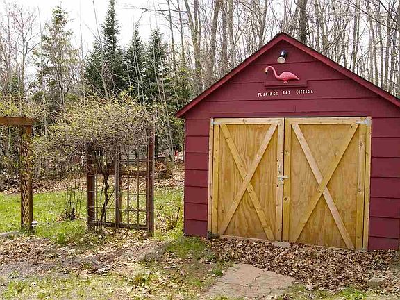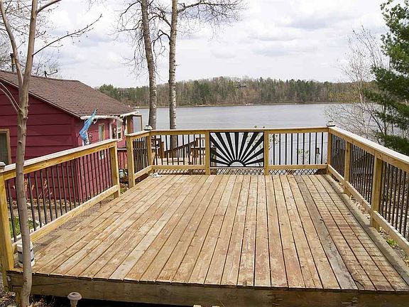 Simple summer lake home with beautiful outdoor features. This one bedroom summer cabin has all the basics and then some. Located on the shore of (West?) Long Lake, the views couldn't be prettier or more serene. Take the stairway down to your own beach for a picnic or down to the dock and hop into your boat. The three garage has extra high doors and ceilings, and is plenty big to store your water craft and other vehicles and gear. A small guest cottage could also be used as a studio space and has a lake view. The central raised deck is perfect for lounging or outdoor meals and in the evenings pull up chairs around the large terraced fire ring. Perennial gardens, paths and thoughtful landscaping surround the outdoor seating areas. The house is humble but has what you need. The small living room and dining room/kitchen have gorgeous lake views and the bedroom is cozy. Come and see if this is the summer place you've been looking for! Access to tri-county corridor and many recreation trails. 118" of sandy frontage with a beach. Newer septic and drilled well. 625 acre lake and tons of fun!