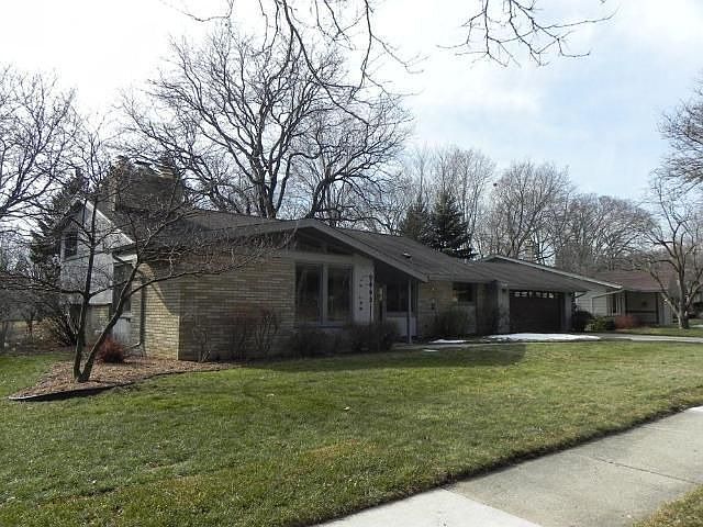 Contemporary home conveniently located in Canterbury Woodlands in walking distance to Greendale HS & Village cntr. Outstanding features incl 3 updated full BA, 2 NFP, generous yd & main flr util rm w/CT & plenty of cabinets! Stunning great rm w/abundant windows, HWF, cathedral clng, Frnch drs & patio drs to deck! Welcoming den/office w/Frnch drs, stone FP and built-in bookcases. The focal point in the vltd family/living rm is a floor-to-ceiling stone FP! Eat-in Kitch incl newer cabs & SS appliances!