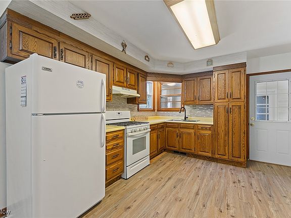 Welcome to 6993 McClure Rd, a charming 3-bedroom ranch nestled on over an acre of land right next to Harding Park! This home offers the perfect blend of indoor comfort and outdoor enjoyment, with a spacious yard and serene wooded views. Step inside through the breezeway, leading to a well-appointed kitchen featuring wood cabinetry, appliances, and an eat-in area with a convenient storage closet or space for a hutch. A brand new high-definition Formica countertop is set to be installed, adding a fresh touch to the space. The generously sized living room is filled with natural light and boasts newer carpeting that extends into the hallway and bedrooms. Each of the three bedrooms offers ample closet space and a cozy atmosphere. The full bathroom includes a tub surround for convenience. Downstairs, the basement provides endless possibilities with plenty of storage and the potential to be finished to your liking. A shower and vanity are already in place, along with laundry hookups. Enjoy the changing seasons from the large, enclosed back porch, perfect for relaxing or entertaining. The home also features an attached one car garage. With Harding Park right next door offering a playground, sports fields, frisbee golf, and walking trails, this is a fantastic place to call home. Don’t miss your chance to see this wonderful property!