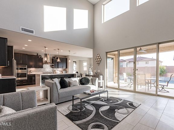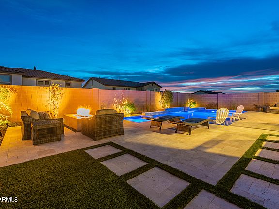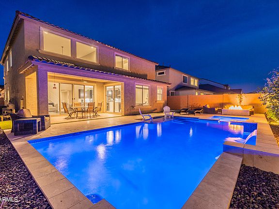 Welcome to Aloravita located in beautiful North Peoria. With breathtaking mountain views, hiking & biking trails and Lake Pleasant within minutes, you truly can experience the Sonoran Desert lifestyle, while still being in direct proximity to shopping, freeways and even minutes from the new TSMC plant. This 4 bedroom 3.5 bathroom home is nothing short of model-home stunning. From the moment you walk in the door you will feel the care that was put into the upgrades and finishes throughout. The chef in your life will appreciate the gourmet kitchen, quartz waterfall edge countertops, stainless steel appliances and butlers pantry. The dining area with a handy desk set up and family room with a cozy fireplace is adjacent to the kitchen area perfect for spending time with family. Not only do you have multiple generously sized bedrooms, you will also find a game room / loft perfect for entertaining, a den that is perfect for a home office and a sitting room to ponder life's great mysteries. Head outside to sip your morning cup of coffee under the covered patio and soak in the ambiance of your gorgeous pool & spa, or cozy up around the firepit after a long day and enjoy a glass of wine in peace. There is no shortage of space both inside and out to spread out and enjoy. Don't hesitate to set your showing appointment today!!
