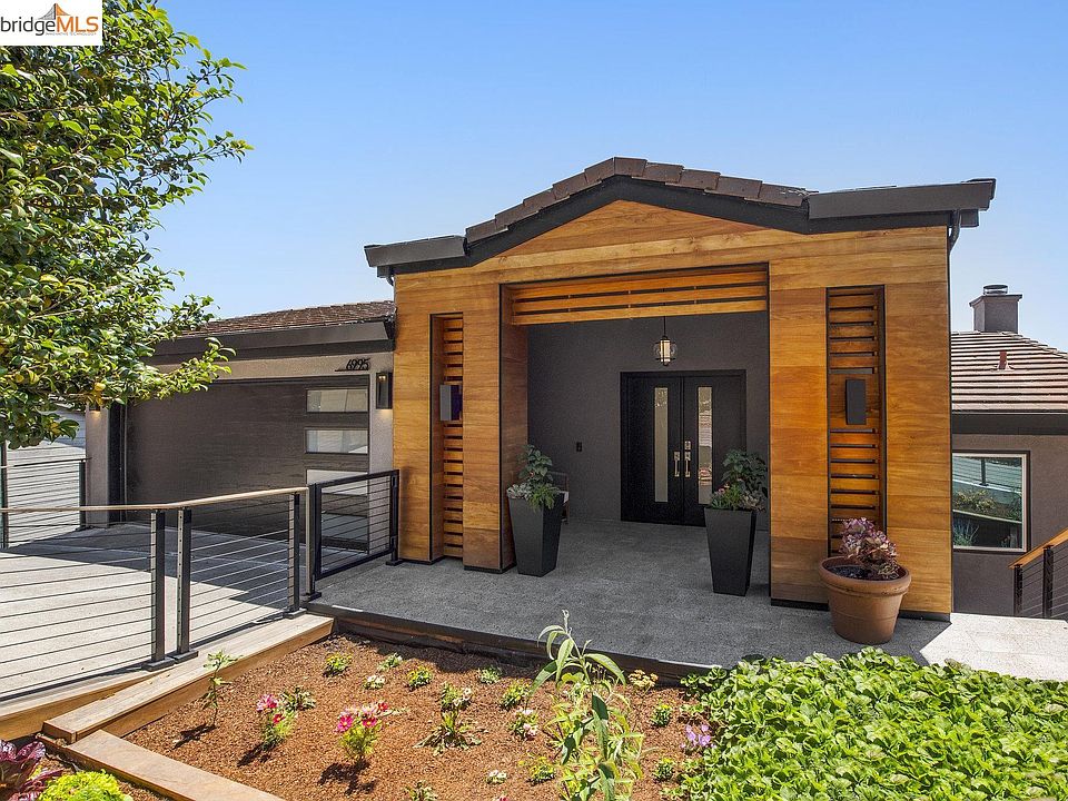 A short drive from Montclair Village but you will feel like you are a world away! This stunning contemporary has been beautifully updated with quality finishes throughout the interior and exterior. Mesmerizing views of the City, Lake Merritt and Bay are framed by the walls of Fleetwood glass sliders that open to expansive Trex decks on all three levels. Soaring ceilings give an expansive feel. Gleaming hardwood floors throughout and soft wool Berber carpeting. Luxurious Primary Suite with expansive walk-in closet, spa-like bathroom, fireplace and private deck. The generous eat-in kitchen opens to the Family Room. Formal Living and Dining Rooms open to each other for ease in entertaining. Convenient laundry room right off the kitchen. There are three additional bedrooms, a plus room, media/playroom and gym/wine cellar. Enjoy lower utility bills with 14 Sunpower solar roof panels (owned). Level in from the street and interior access from the garage. Professionally landscaped garden and ideal level outdoor space on the lower level. Minutes from Sibley and Huckleberry parks as well as near Grizzley Peak. A true oasis.