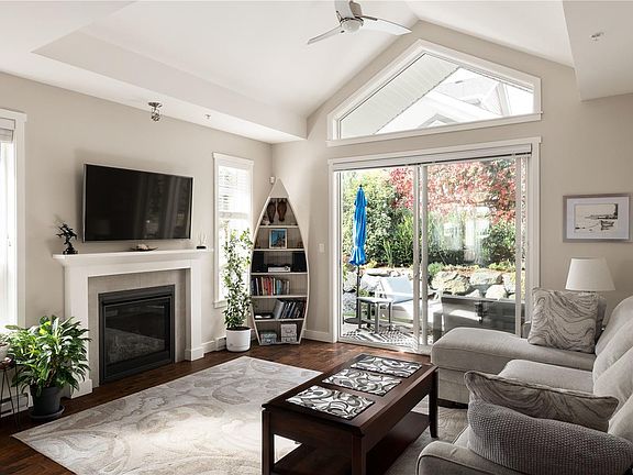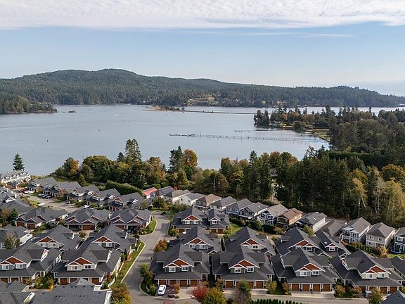 Quiet & private end-unit at Heron View Villas! Flooded with natural light from being an end unit, this immaculate 3-bed, 3-bath home, which shows like new, offers the sought-after main-level living floor plan. The primary suite (with a walk-through closet and ensuite), laundry, and living are all on one floor. The gourmet kitchen features a large island, timeless wood cabinetry, quartz counters, stainless steel appliances, and an induction range. The living room impresses with a vaulted ceiling and gas fireplace, opening to a private, sun-soaked west-facing patio, your perfect spot for afternoon sun. Upstairs offers 2 generous beds and a full bath. Storage is abundant with an overheight 12' double garage and an easy-access crawl space under the entire home. Enjoy resort-style amenities including an outdoor pool, hot tub, sauna, gym, tennis court, firepit, and ocean access next to Sooke Harbour Marina. A premier home in a premier location!