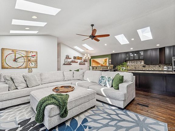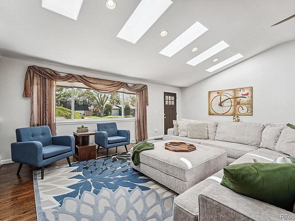 Nestled in the highly desirable Columbine Knolls community, this exceptional ranch-style home offers the perfect blend of elegance and functionality with 5 spacious bedrooms and 5 beautifully appointed bathrooms, including two primary suites on the main level. Upon entry, you’ll be welcomed by a bright and airy open floor plan, showcasing meticulous attention to detail and thoughtful updates throughout. The chef’s kitchen is a true standout, designed for both style and practicality, featuring a large kitchen island with sleek slab granite countertops, stainless steel appliances, a gas cooktop, double ovens, abundant cabinet and counter space, along with a formal dining room is an entertainer’s dream. With an effortless flow between the indoor and outdoor living areas, the stunning sunroom allows you to enjoy Colorado’s beautiful climate year-round. Step outside into the spacious backyard, perfect for both playful afternoons and serene evenings, with private access from the primary bedroom. Just steps away, enjoy the community pool for a refreshing swim or to socialize with neighbors. The basement offers an expansive living space with rec room, living room, bedroom, full bath, and a large sun-drenched entertainment area. This home is loaded with features including vaulted ceilings, a new roof and gutters, new skylights, luxury vinyl flooring in the basement, and a newer furnace and A/C. Combining convenience, luxury, and a prime location, this home is truly a rare find and a must-see!