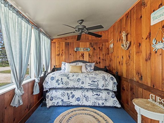 This waterfront cottage rental is on Lake Huron. This cottage includes a fully equipped kitchen, dining, sunroom, 2 bedrooms, 1 bath and a spacious living area which is all furnished and offers linens and towels. The property amenities: firepit, laundry facility, grills, a large gorgeous pavilion with a full service indoor kitchen and sitting/eating area, a sandy beach (with play structure) to swim and kayak (kayaks available), just a walk down and you're at the state park beach, large grass area to play ping pong, volleyball, cornhole, and ladder toss. Or if you're looking to just rest, relax and watch the freighters pass by, there are plenty of benches, hammocks, and adirondack chairs.