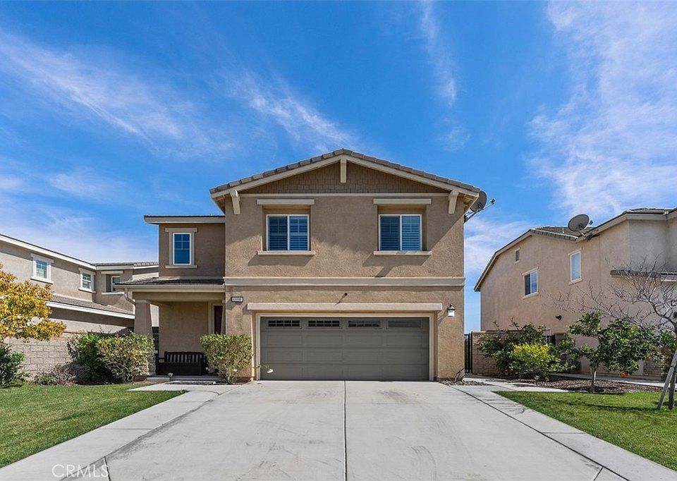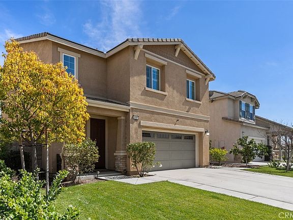 This newer built and highly upgraded Lennar home in Jurupa Valley is a must see! You will enjoy its smart floor plan that makes great use of 1,827 square feet, which includes a loft, 3 bedrooms and 2.5 bathrooms. The open downstairs is both stylish and practical with it's modern kitchen, powder room, tile (hardwood plank style), and gas fireplace. The kitchen has upgraded cabinets, granite counters, stainless steel GE appliances, a double oven, a pantry, and a large island. The upstairs has a laundry room with walk in linen, a spacious master suite, an open loft that works well for a playroom or office, and two additional bedrooms. The master suite has a large walk in closet, two vanities, a separate shower and bathtub, along with ample cabinet and storage spaces. There is recessed lighting throughout and a two car garage. The attractive backyard has a nice concrete patio and covered awning. This home is right next to the booming Eastvale and is conveniently located near major freeways, I-15, 60, 71 and 91. It is close to shopping centers, movie theaters, restaurants and gyms.