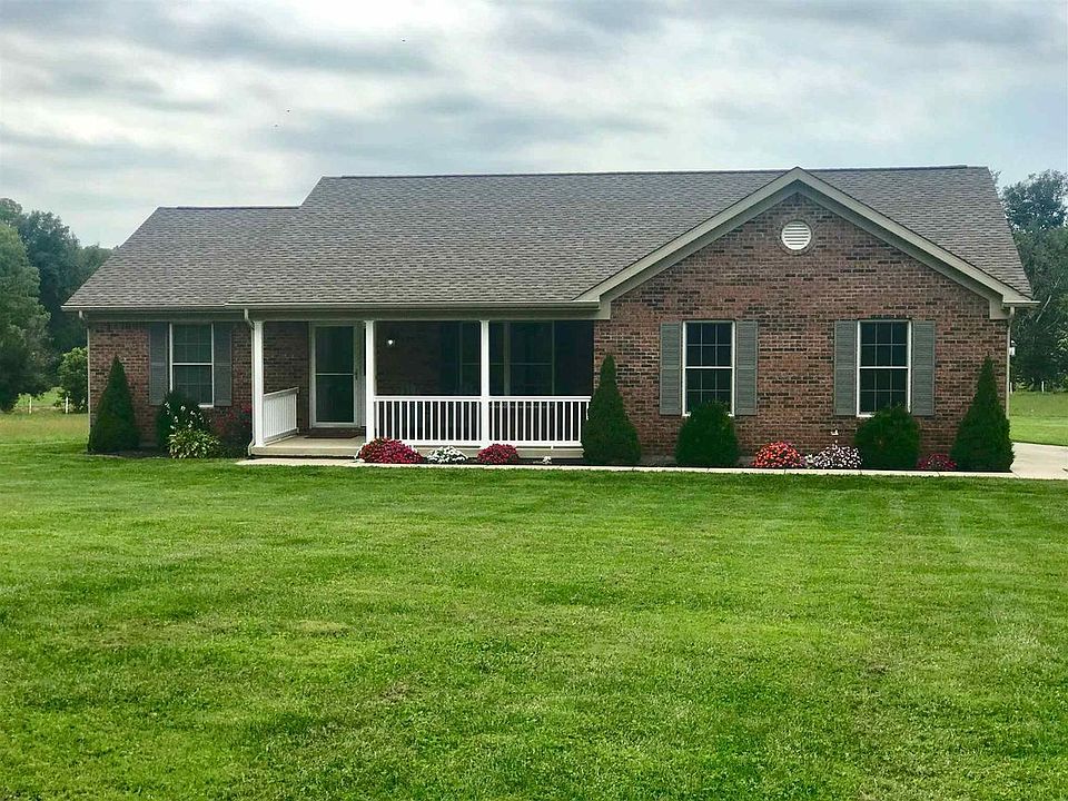 Beautifully maintained ranch home with 3 bedrooms, 2 bath home. Open floor plan with laminate flooring throughout, carpet in 2 bedrooms. Large master bedroom with walk-in closet and light-filled bath. All kitchen appliances included. Nice covered deck off the back to enjoy western views. Situated on 2.70 acres, just minutes from downtown. Easy access to Hwy 45, Hwy 37 & I-69.