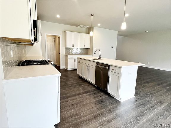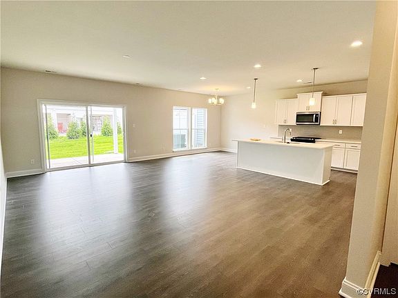 The Belmont by Main Street Homes. Energy Star certified 2-story interior unit townhome features 3 bedrooms, 2.5 baths, oak stairs, tankless water heater, covered patio with backyard, front entry 2-car garage, and 2,163 living square feet. The 1st floor includes a welcoming 2-story foyer, powder room, mudroom, family room, dining area, and gourmet kitchen complete with quartz countertops, ceramic tile backsplash, stainless-steel appliances, a large island, and a walk-in pantry. The 2nd floor offers a massive primary bedroom with an en-suite bathroom complete with ceramic tile shower, double bowl vanity, and walk in closet, 2 generously sized guest bedrooms, a full bathroom, and laundry room. Cosby Village amenities include a clubhouse with fitness center, a resort style pool, community garden, dog park, paved sidewalks with pocket parks, and walking trails. Cosby Village will give you low maintenance living right off Hull Street Road and Otterdale Road in a top ranked school district near shops and dining. Cosby Village has it all!