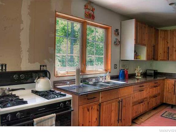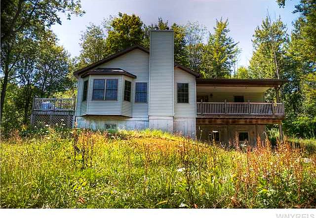 Calling all Outdoorsmen!!! 55.7 Acres in scenic NY State 1.4 Miles to beautiful Lake Chautauqua. 9.4 miles to Lake Erie for great fishing. November is for Deer Hunting! Rails to Trails runs through this property affording you the opportunity for exploring with your snow mobile, quad, horses, do some hiking, etc. Natural gas well provides you with royalties while at the same time affords you 200,000 cu ft per year for personal use. Stay off the grid! Heat & cook with your own natural gas. Ready-to-finish basement has radiant heat built into the concrete flooring. Steel I-beams provide open concept both up and down stairs. Travertine and Slate floors in 3 entryways and baths. Two large decks. One serves as front porch with great views of wildlife. See wild turkeys and deer walk through your front yard as well as a plentiful assortment of other wild life and birds. Side deck is great for evening conversation and star gazing. Have a fire in your outdoor fire pit. Fish Lake Chautauqua and Lake Erie - Friday is for fish fry! Large Garden for those who like to grow their own vegetables. Privacy and peace abound at this off the road location nestled into the mainly wooded lot. Keep your home warm with the two working wood stoves. One upstairs and one down. Ready to finish with your own touches. Needs electric run to the house and right-of-way for the access road. Let's discuss! Survey of the 55.7 acres, completed. Title Search Done...