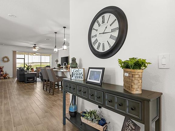 Live Smart. Live Stylishly. Live in Florida -Trinity Lakes Community. Introducing a Lake View, Kennedy III—a beautifully designed, three-years-new home that effortlessly blends modern convenience with timeless sophistication. With 4 spacious bedrooms, 3 full bathrooms, and a 3-car garage, and this home offers the 2379SF of space, style, and functionality today’s buyers desire. Step into a light-filled, open layout where luxury meets practicality. The gourmet kitchen features 42” cabinets, an expansive center island, a walk-in pantry, and a welcoming breakfast nook—ideal for both everyday living and entertaining.A separate formal dining room provides the perfect space for special occasions. The family room flows seamlessly to a covered patio, now enhanced with custom landscaping, decorative lighting, and a beautifully crafted paver extension that creates a tranquil retreat right in your backyard.The screened lanai, complete with a remote-controlled ceiling fan, allows you to enjoy outdoor living in comfort, year-round. Inside, thoughtful upgrades elevate every room—from elegant crown molding and shiplap ceiling accents in the foyer, to luxury vinyl plank flooring in the master bath and guest suite. Each bedroom and the living room are outfitted with stylish ceiling fans for year-round comfort, and custom lighting adds warmth and character throughout the kitchen and dining areas. The primary suite is a peaceful haven, featuring a spa-inspired en suite bath with double vanities, a walk-in shower, a soaking tub, and a private water closet. The fourth bedroom, located at the front of the home, includes a private full bath and functions perfectly as a guest suite/in-law or home office. Designed with today’s smart homeowner in mind, the property includes a full suite of smart home features, including a keyless front entry system, Moen Flo smart water monitoring, and a whole-home Wi-Fi system designed to eliminate dead zones. The Iflo HVAC air purification system, solar features, and energy-efficient appliances contribute to a healthier, more sustainable lifestyle. Additional enhancements include: • Professional landscaping with custom irrigation, lighting, and palm trees for added curb appeal • Rustic ceiling fans on the front porch and lanai for style and functionality • Govee Lights • Garage ceiling storage, exterior keypad, and Bali Verticell shade on the sliding glass door • Laundry room cabinetry for added convenience and organization Located in the highly sought-after Trinity Lakes community in Groveland, this home offers the best of both worlds—a peaceful, rural setting with a Lake View, making sitting on the front porch relaxing and peaceful but close enough for quick access to everything Central Florida has to offer. Residents enjoy resort-style amenities, including: • A beautifully designed clubhouse with pool • Fitness center • Playgrounds • A lakefront park with dock access All just a short drive to Clermont, Minneola, and major highways like the Florida Turnpike and Hwy 27. Enjoy proximity to Lake Louisa State Park, Lake David Park, Lakeridge Winery, and outdoor and recreational attractions This home is more than move-in ready—it’s been meticulously enhanced and lovingly maintained, making it a truly rare find in today’s market. From the luxurious upgrades to the unbeatable location, this is a home you don’t want to miss. Schedule your tour today and experience the Lake View, Kennedy III lifestyle for yourself!