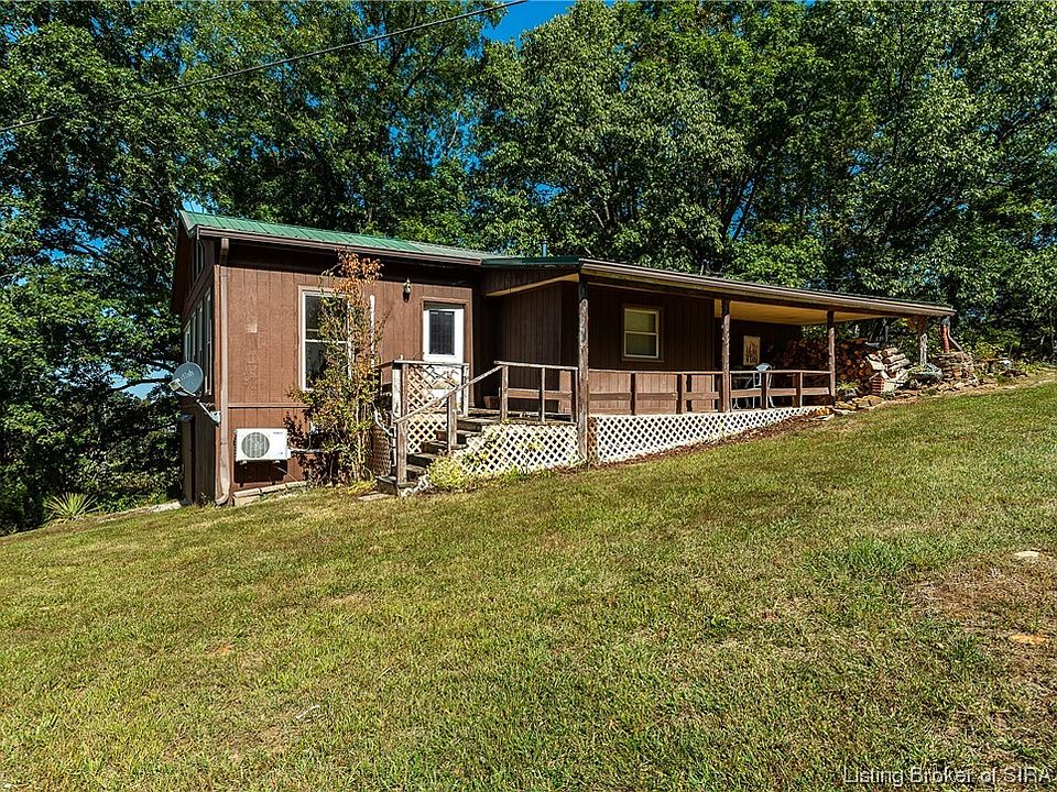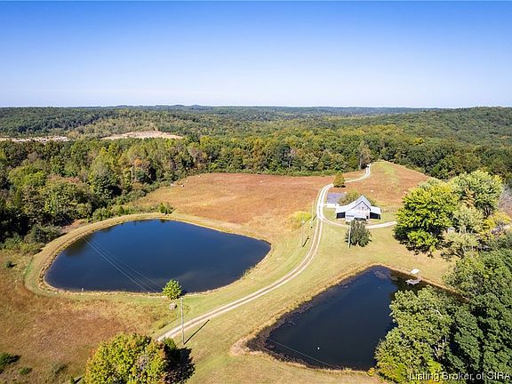 This is a once in a lifetime opportunity for you and your loved ones to all live on the same property! This property has a main house with great room(rooms listed), a secondary home that is a log cabin (that pre-dates the civil war) with a great room that has been added on with modern amenities including a basement, kitchen, loft area and 2 bedrooms, and a newer 30 X 40 apartment up on the hill with 2 bedrooms, living area, full bathroom and a laundry room. This property also has 2 ponds (stocked with fish), a garage with a loft, an old beautiful barn, and a shed that was used for an art studio. There are tillable acres as well as wooded areas for hunting. This property is surrounded on 3 sides by the state forest and is less than 5 miles from Wyandotte Cave. Home is 5 miles from State Road 62 and 7 miles from I-64 for easy access.