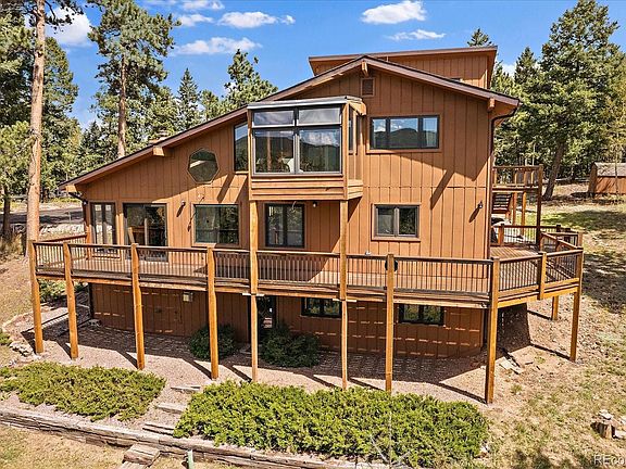 This Evergreen area mountain home is more than just a house; it's a haven where you can escape the hustle and bustle of everyday life and reconnect with the natural world. It's a place where modern convenience meets rustic elegance, where privacy meets panoramic views, and where you can create a lifetime of cherished moments. Upgraded Andersen doors and Pella windows give you views from the Arapaho National Forest to Mount Blue Sky. Large, updated eat in kitchen with newer appliances and a butcher block island that contains a JennAir grill, the kitchen also features a gas fireplace and hand carved storage cabinets with stained glass insets. There is a formal dining space off the kitchen for entertaining family and friends. Step outside onto the wrap-around decks that provide the perfect vantage point to take in the spacious views of the Arapahoe National Forest and Mt Blue Sky (formerly Mt Evans). Whether you're entertaining, enjoying a quiet dinner, or simply stargazing on a clear mountain night, these decks are your front-row seats to the wonders of nature. A bonus: This home includes an apartment with its own entrance, private deck and single car garage - perfect as a guest area, in-law suite, art studio or whatever your dreams make of it. The apartment has a natural wood stove in the living room and a loft for fabulous views to stir your creativity. The home's primary suite has its own solarium that is like a crow's nest above the trees for reading, resting and enjoying a morning beverage or a nightcap. The workshop/detached garage is heated and a mechanics dream; it would also make a great art studio. Enjoy the fox family that has kept a den nearby and the buzzing hummingbirds all summer long as deer tiptoe through the nicely wooded and fire mitigated property. There are so many special features to this house. Come tour it and see for yourself the best of mountain living. Please do not enter driveway without an appointment.