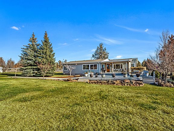 Striking mountain views of the Three Sisters and Broken Top frame this nearly 10-acre property. The fully updated 3-bedroom, 2-bath residence features completely renovated bathrooms, new flooring, doors, and trim, all anchored by a beautiful kitchen with hickory cabinetry, stainless steel appliances, and updated lighting and plumbing fixtures. Modern efficiencies include a new wood-burning fireplace and an updated HVAC system. These are just a few of the home's many enhancements. A spacious shop/barn offers ample storage for equipment and recreational gear, complemented by a fenced turn out area, four-stall loafing sheds that is ideal for horses, livestock or additional covered storage. A greenhouse with fenced garden area and chicken coop enhance the property's self-sustaining appeal. Bordering thousands of acres of BLM land, the property provides immediate access to miles of trails, creating an exceptional opportunity for outdoor recreation.