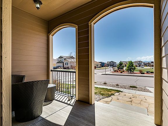 Welcome home! Charming corner lot rancher is ready to give you great main level living. A covered front porch greets you. Step inside a long hallway leads you to an open flowing floor plan. Gourmet kitchen welcomes you with a large center island with two counter bar areas. Kitchen also boasts great cabinet storage space, granite counter tops, stainless appliances, pantry and a eat-in nook that walks out to the backyard. Spacious bright living room with tray ceilings. A separate dining area sits convenient to living room and kitchen. The large master bedroom features tray ceilings and privately adjoins with large walk-in closet and a 5-piece master bath including oval soaking tub, stand alone shower and double vanities. Main level has two additional roomy secondary bedrooms, a full bathroom and a half bathroom. Main level laundry has access to garage. The unfinished basement gives you the perfect space for future growth. Out back you have a 15x10 covered concrete patio. Home also features a tandem 3-car garage, art display niches off entry, great natural light throughout. Sitting in a lovely community with convenient across the street access to park. Easy access to Powers Corridor, shopping, schools and more. Minutes from USAFA.