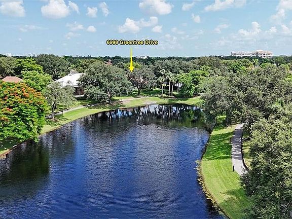 Welcome to your very own luxury oasis! This home is located on one of Pelican Bay's most prestigious streets, Greentree Drive. A rarely available home site that offers stunning and private southern long lake views. Beautifully remastered with high vaulted ceilings throughout the main living areas. The desirable open concept floor plan features split bedrooms for privacy. Each living area flows seamlessly from one open area to the next. Including 4 bedrooms plus an enclosed den/office, 3.5 beautiful bathrooms, and 3,071 square feet of living space under air. The tall french front doors open to an elegant interior graced by wide plank blonde hardwood flooring, high ceilings, quartzite countertops, white shaker cabinetry, gourmet kitchen appliances, a wet bar with pass through window to the covered lanai, a stone wall fireplace, and the list goes on! Tasteful neutral tones throughout the home create a perfect, sophisticated ambiance. The inviting backyard features a screened-in sparkling pool, spa, and covered seating area. Enjoy peace of mind knowing this home is NOT in a flood zone and is fully protected with impact windows & doors throughout, and electric shutters along the back of the residence.