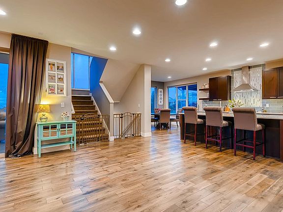 4 bedroom/4 bath home nestled in a cul-de-sac in the beautiful Tallyns Reach area, complete with gourmet kitchen, beautiful quartz countertops, custom backsplash, stainless steel appliances and unique gray hardware floors throughout the main and upper level with an open concept floorplan, Private Office and mudroom complete the main floor, Master retreat complete with a custom shower with a view, All Bedrooms are equipped with unique up/down Black out Hunter Douglas blinds. Finished walk out basement, complete with a guest room, custom shower, ample storage space and room for entertainment opening up to the patio for enjoyment of sunsets by the fire pit, Backyard professionally landscaped with multiple sitting areas, decks and patios, Neighborhood is part of the award winning Cherry Creek School District, Additional upgrades include solar roof, tankless water heater, built in shelves in the garage, crawlspace and throughout the home. Pride of ownership, Immaculate condition