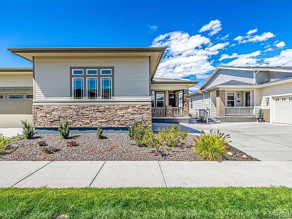 Don’t miss your chance to own this stunning, one-of-a-kind ranch in a highly sought-after location. Set on a spectacular lot with panoramic views of the Rocky Mountains, it’s the only available home in this exclusive section of the community—and once it’s gone, it’s gone! Featuring four bedrooms, three bathrooms, and finished basement, this attached villa offers the comfort and privacy of a single-family residence—paired with the convenience of a lock-and-leave lifestyle. Inside, you’ll find elevated finishes including 9-ft ceilings, sleek 8-ft doors, and modern steel cable stair railings. The open layout centers around an sparkling kitchen appointed with 42” cabinets, quartz countertops, a wood-wrapped island, luxury vinyl plank flooring, gas stove, and stainless steel appliances, making it the ideal space for entertaining. The primary suite, tucked at the back of the home, features a walk-in closet and upgraded bath with dual sinks, floor-to-ceiling tiled shower, poured pebble pan, and frameless glass door. Two bedrooms and a full bath are located at the front, along with a discreetly placed laundry room. Custom details elevate the home, from a striking see-thru, fully conditioned wine cellar to the seamless indoor-outdoor connection. Step outside to a turf yard with curated plantings and a covered patio with a custom built-in linear fire pit perfect for enjoying Colorado sunsets year-round. Downstairs, the finished basement provides a game room, oversized bedroom with a walk-in closet, full bath and walk-in shower. A storage area offers plenty of room for all extras. The 2-car garage includes a high ceiling with built-in shelving. Located in the vibrant Canyons community, residents enjoy resort-style amenities: clubhouse w/fitness center, pool, pickleball, multiple parks, and an on-site restaurant and coffee house, miles of scenic trails and the upcoming Lifetime Fitness Wellness Retreat!