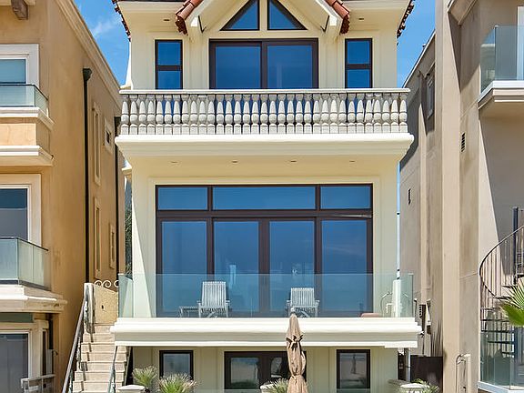 Stunning 1999 remodel, Mediterranean exterior, kitchen, living & dining room interiors w/ contemporary flair. 1st floor perfect guest suite or additional bedroom with en suite bath with steam shower & enclosed beachfront patio. 2nd flr gourmet kitchen, living room, dining room, create the great room effect, so popular today, all w/ spectacular white water, Catalina, Palos Verdes, Peninsula and sunset views. Kitchen sit at counter bar separated from dining room. Step down living room with high ceilings and full height glass doors leading to 10 foot beach facing patio. Stacked stone fireplace front features media wall with double built in large flat screen TV's. Third floor master, double door entry, vaulted ceilings, fireplace, walk out balcony, w/ panoramic views, dramatic en suite bath, twin french sink vanities, separate water closet. Automated skylights, hall bathroom w/ jacuzzi tub serves 2 rear bedrooms with back bay views. Spiral staircase from master leads to roof top deck with stunning 360 views. The prestigeous 24 hour guard gated community of Surfside Colony is located 12 miles north of Newport Beach and 6 miles north of Huntington Beach and 1 mile south of Seal Beach. Buyer to verify square footage of lot and residence prior to close of escrow.