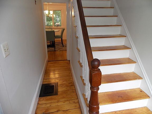This home is truly in move in condition with many updates, including remodeled kitchen with all new appliances. New first floor bathroom. The interior has recently been painted. Some of the electrical has been updated. You will enjoy the very private setting far from the road. The living room has bay windows. On the second floor you will find three bedrooms and a full bath. Also there is plenty of parking and a full sized garage with an automatic door opener.