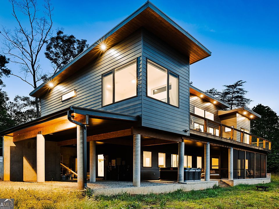 Pre-Construction Wren plan on a basement. Two story modern cabin with 4 bedrooms and 3.5 baths. This design features an elongated living area with extra room for a full dining table. You will love the wall of windows facing your mountain view, which open up to the large porch. Main level bedrooms include en suite bathrooms. 2 more bedrooms plus hangout area downstairs. The porch/patio spans nearly the width of the home with an optional side patio off the master to take in all of the views of Blue Ridge Mountains! Mountain view, stream & walking trail access