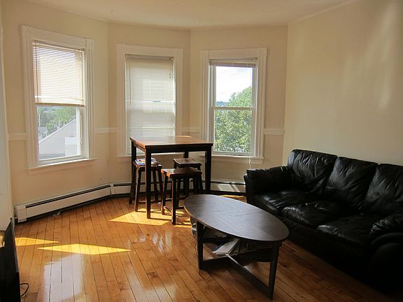 Spacious, well maintained, de-leaded and updated top floor unit is extra bright with ample size bedrooms and living room with bay window, lots of natural light and city view. Beautiful wood floors, updated kitchen appliances and granite counter, private deck and large heated sun room. Washer/dryer hook-up in unit. Parking for 1 car in driveway. NO PETS, NO EXCEPTIONS. Super convenient location near public transportation, park, school and amenities. 3rd Fl. walk-up. Washer & Dryer hook-up, tenant supplies their own washer/dryer. Move-in Fee: 1st month, 1 month security and 1/2 month Rental Agent Fee. No smoking in the building.